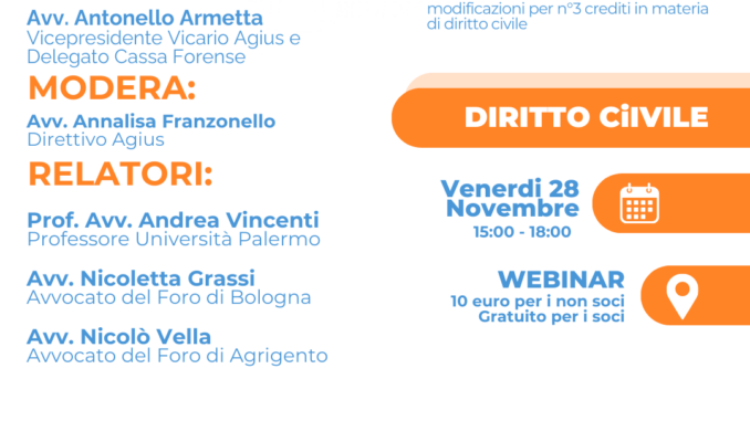EVENTI 2025 Società tra avvocati e studio individuale: Profili civilistici e fiscali L’evento è gratuito per i soci Agius, a pagamento per i non soci. Scopri come partecipare Come Partecipare all’evento 28 Novembre 2025 Ore […]