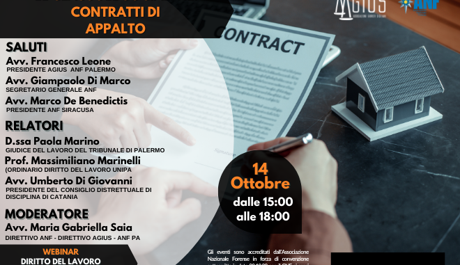 EVENTI 2022 EVENTI 2022 LE CLAUSOLE SOCIALI NEI CONTRATTI DI APPALTO 14 Ottobre 2022 Ore 15:00 5 3 crediti formativi Diritto del lavoro Iscriviti all’evento NON sei socio agius? ISCRIVITI ALL’evento al costo di 5 […]