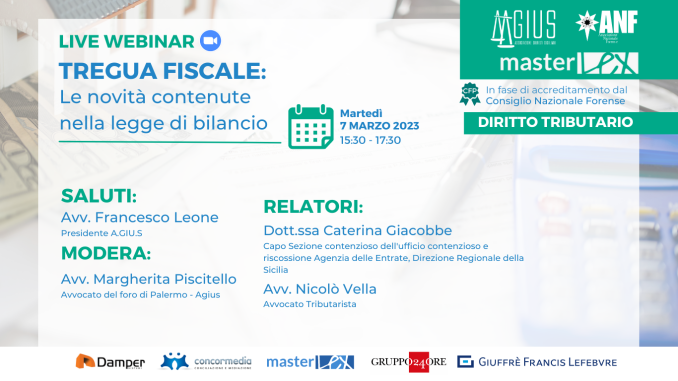 EVENTI 2023 EVENTI 2023 TREGUA FISCALE Le novità contenute nella legge di bilancio 7 Marzo 2023 Ore 15:30 in fase di accreditamento Diritto Tributario Iscriviti all’evento Sei socio agius? […]